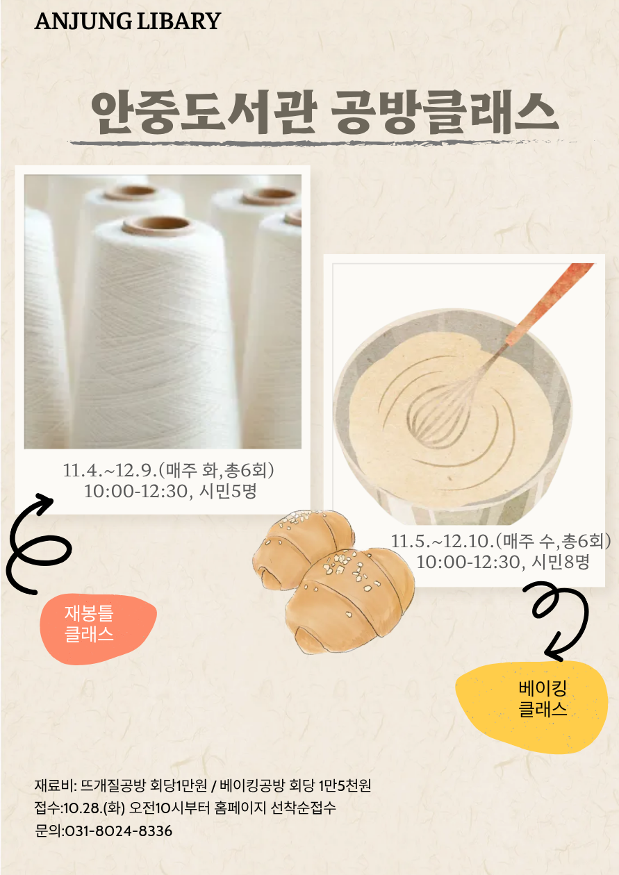 [안중]공방클래스(뜨개질/베이킹수업)안내