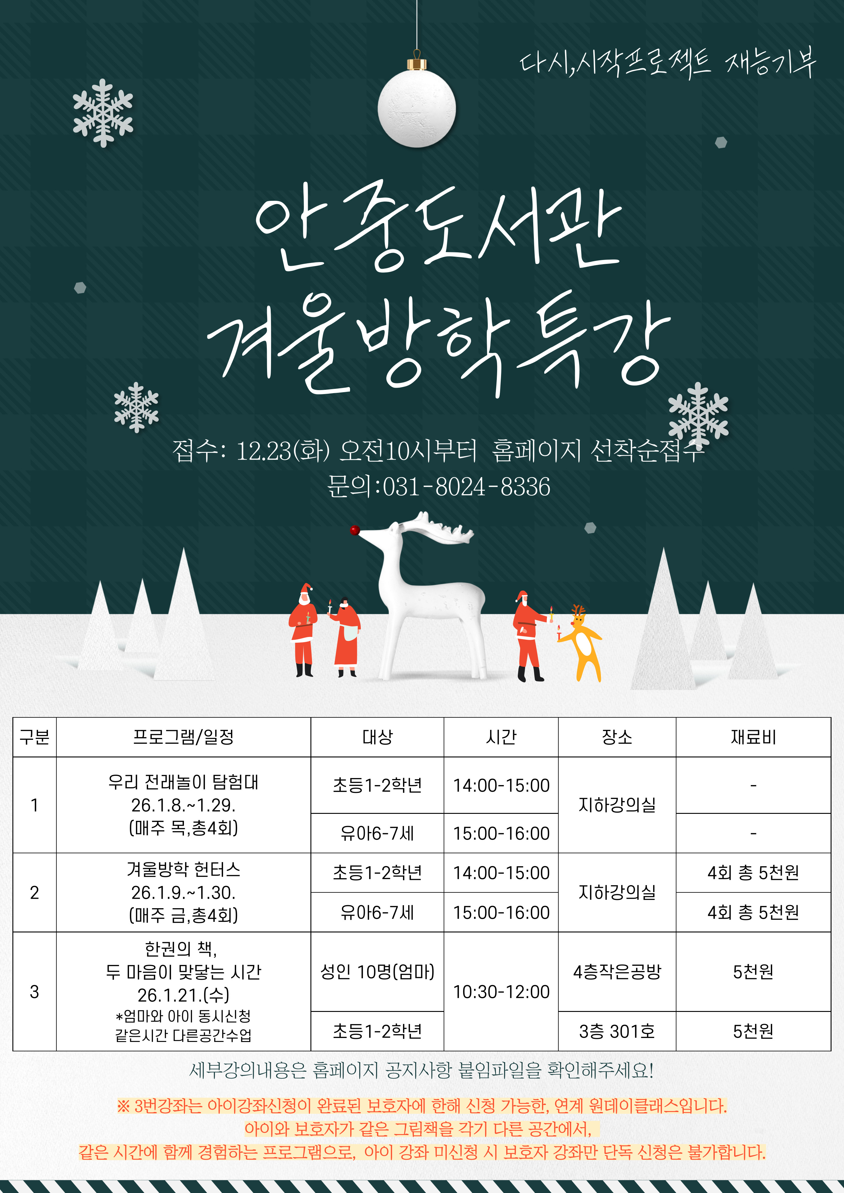 [안중]어린이 겨울방학특강&원데이클래스안내
