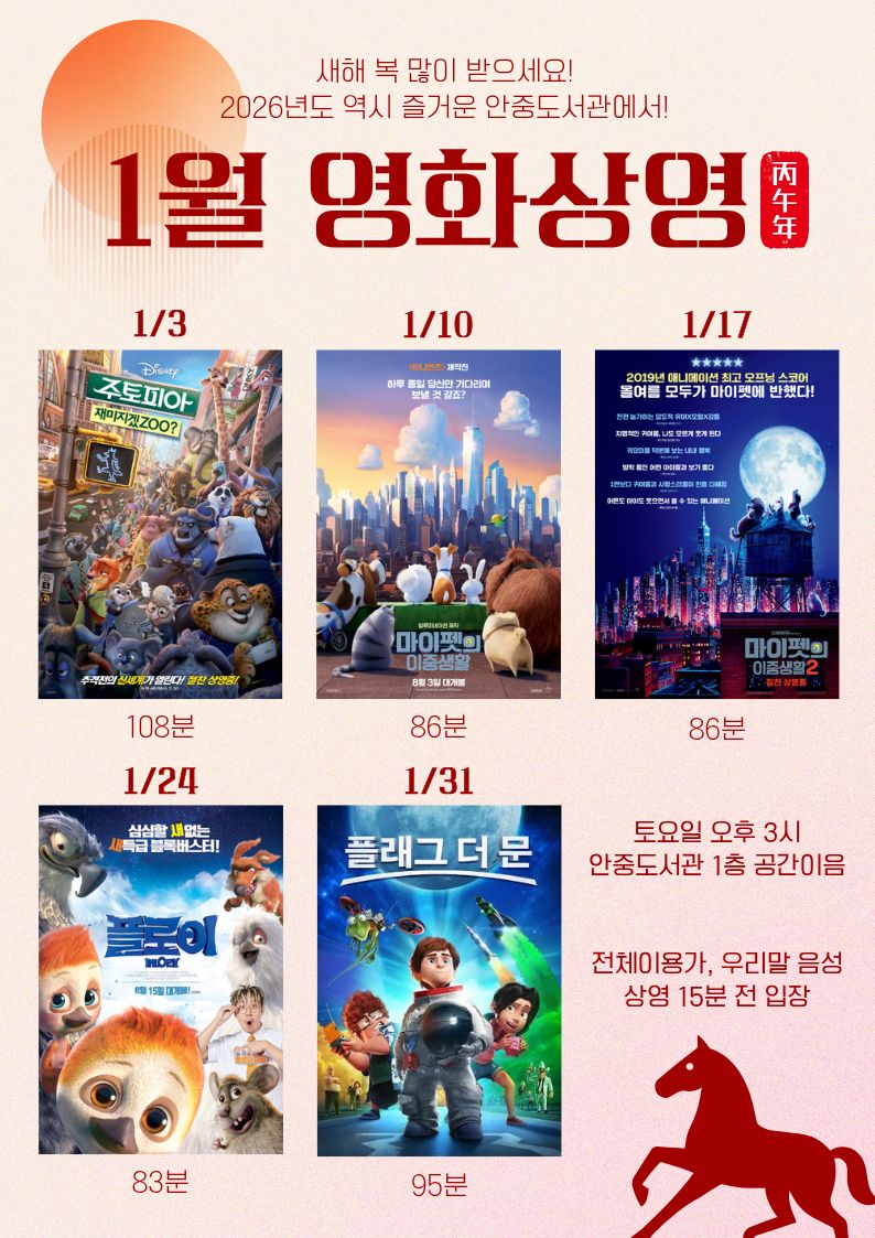 안중도서관 2026년 1월 토요영화상영 안내