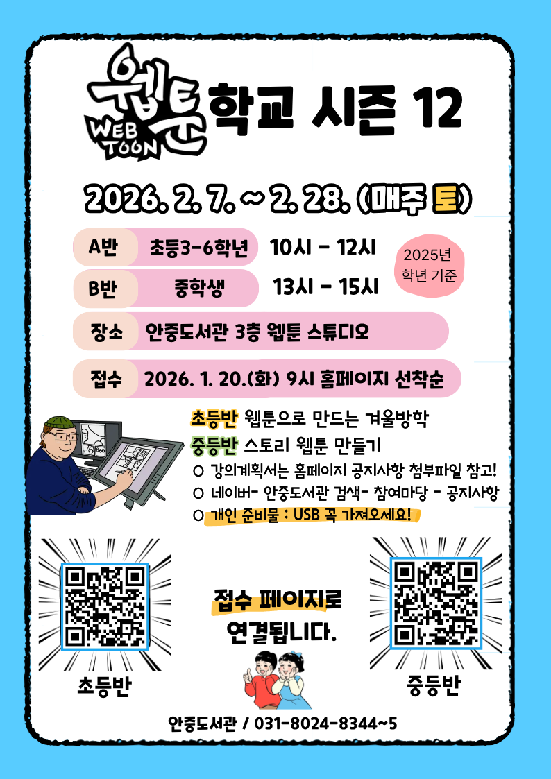 [웹툰학교 시즌12] [초등/중등] 겨울방학특강 모집 안내