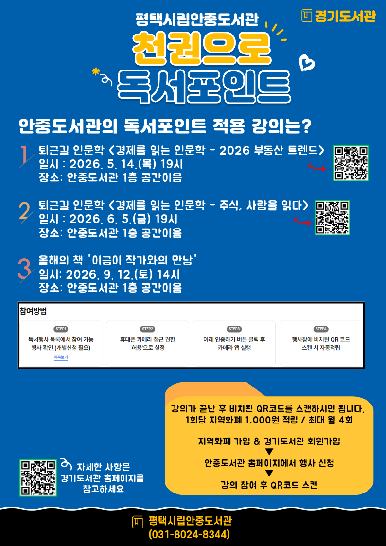 [천권으로 독서포인트] 안중도서관 독서포인트 독서행사 안내