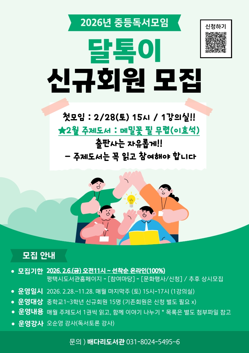 2026년 중등독서모임 '달톡이' 신규회원 모집