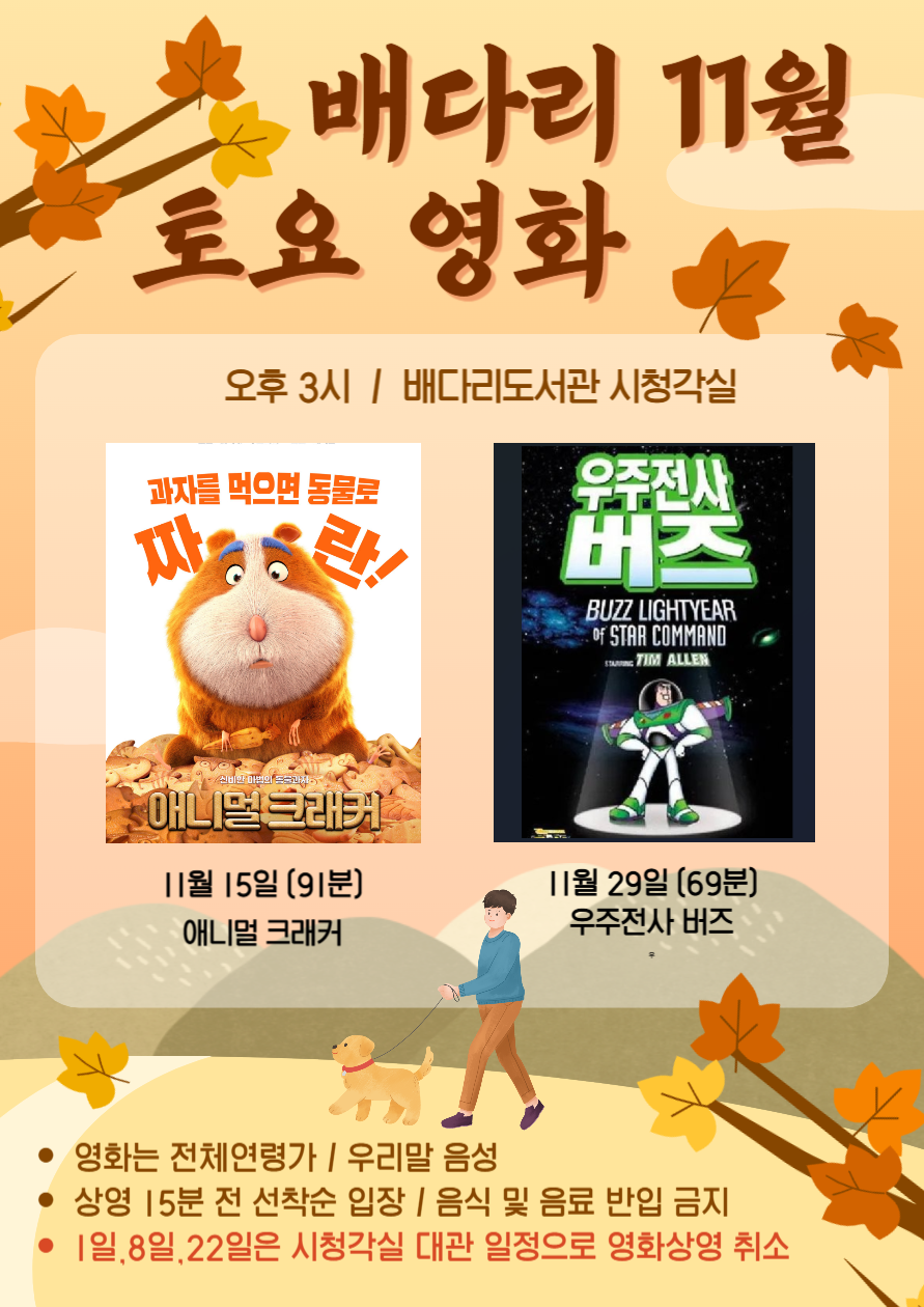배다리도서관 11월 토요영화 상영 안내