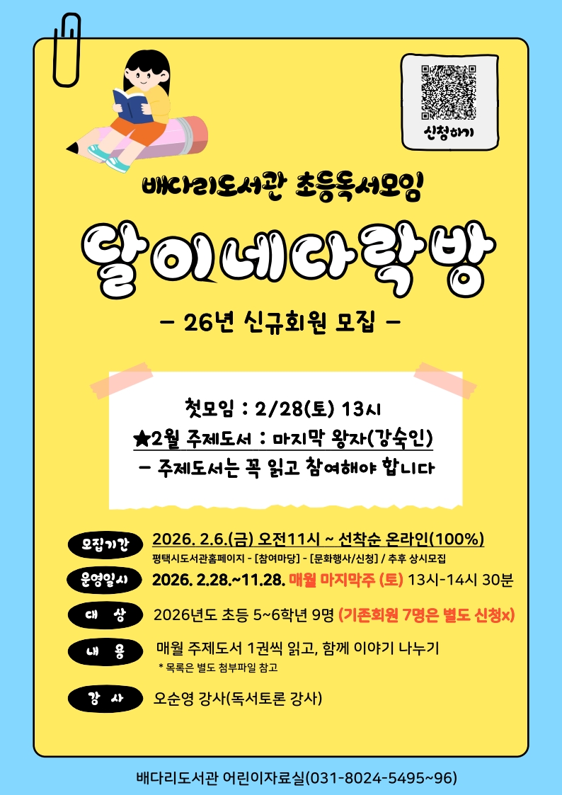 2026년 초등독서모임 '달이네다락방' 신규회원 모집
