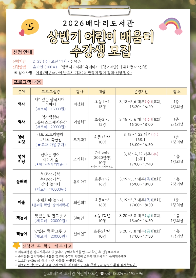 2026년 상반기 어린이 배움터 운영 안내