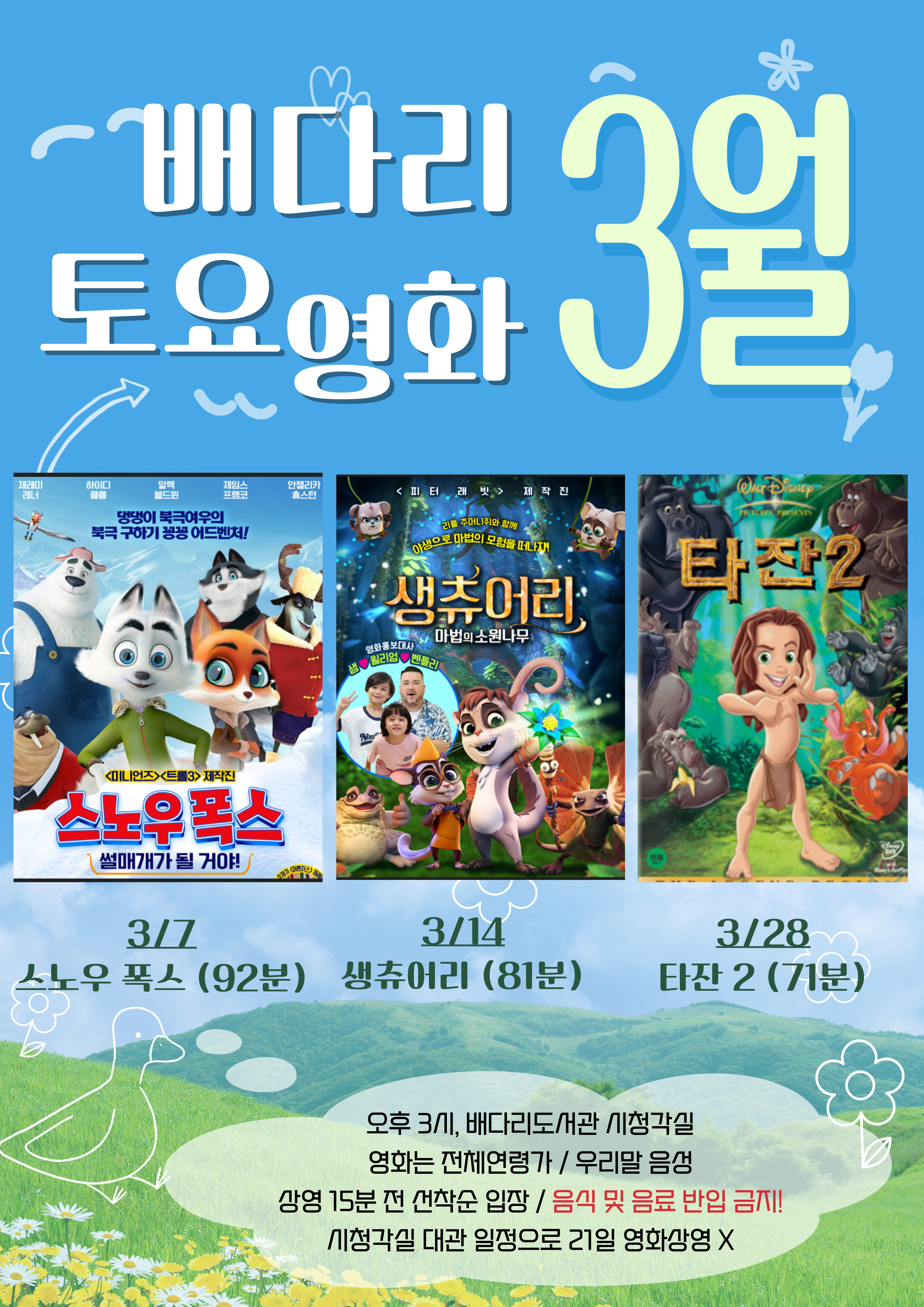 배다리도서관 3월 토요영화 상영 안내