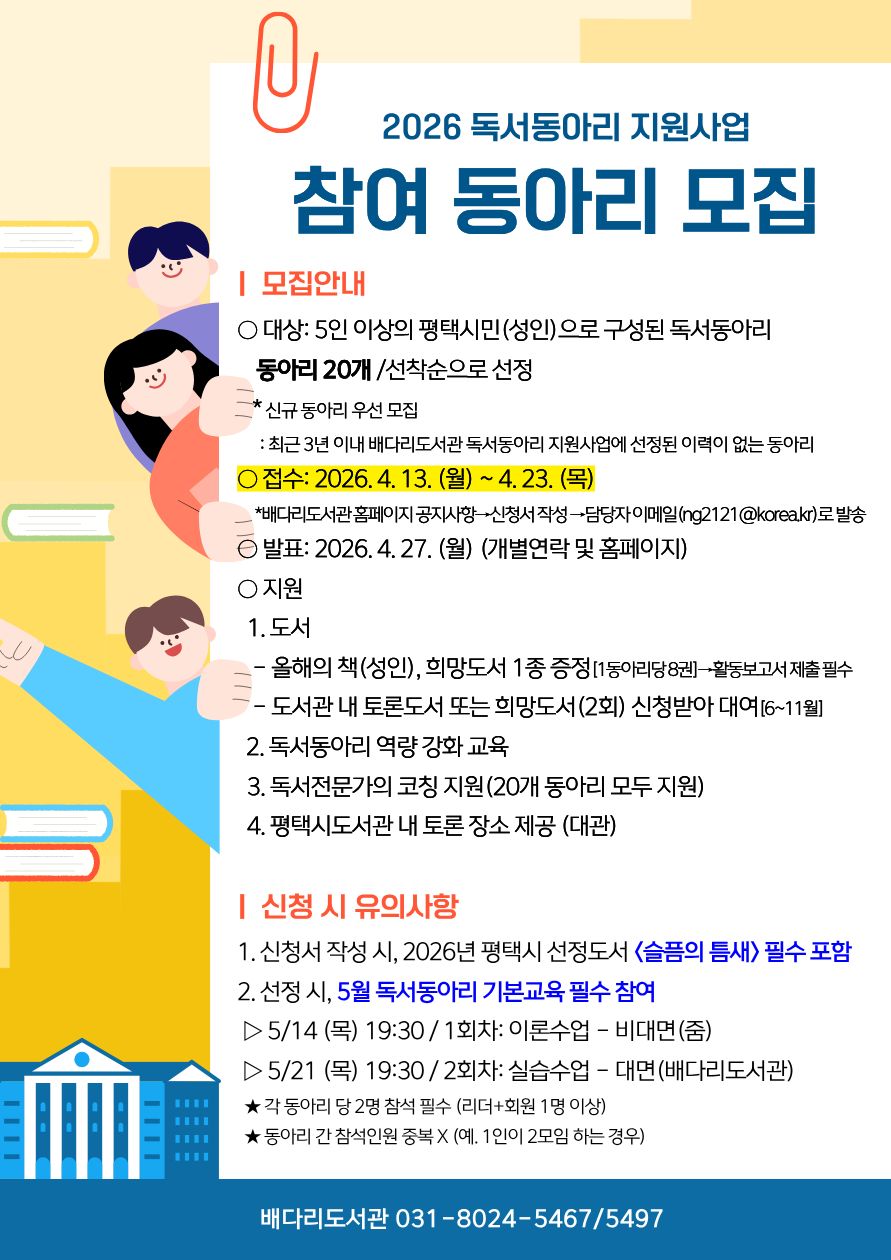 2026년 「독서동아리 지원사업」 참여동아리 모집 (신청서 첨부)