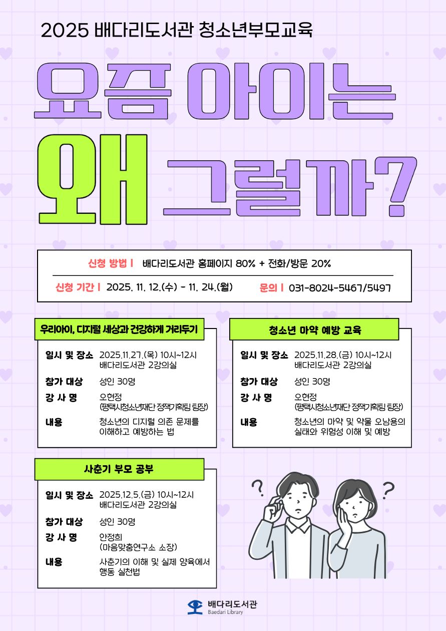 | 문화행사명 | [2025 연말 성인특강] 청소년 부모교육 <우리아이, 디지털 세상과 건강하게 거리두기> |