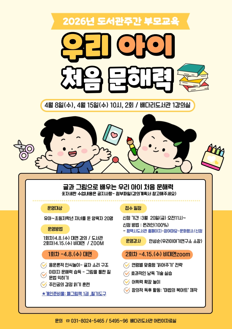 | 문화행사명 | [4월 부모교육] 우리아이 처음 문해력 |