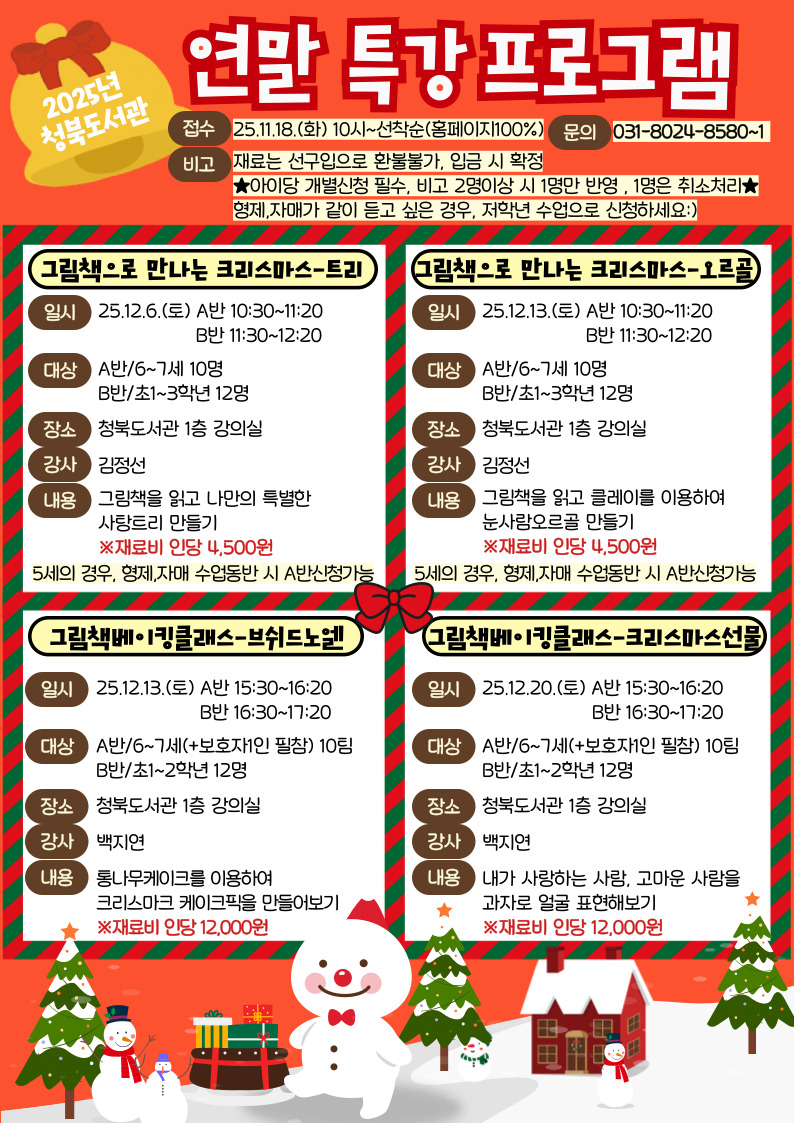 | 문화행사명 | [청북] 그림책 크리스마스-눈사람오르골(6-7세) -연말 특강 |
