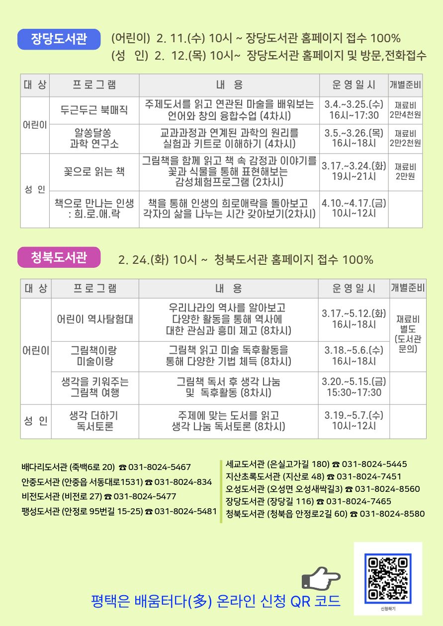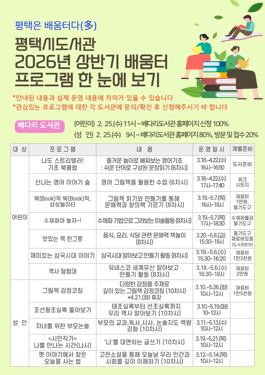 평택시도서관 상반기 배움터 프로그램 한눈에 보기
