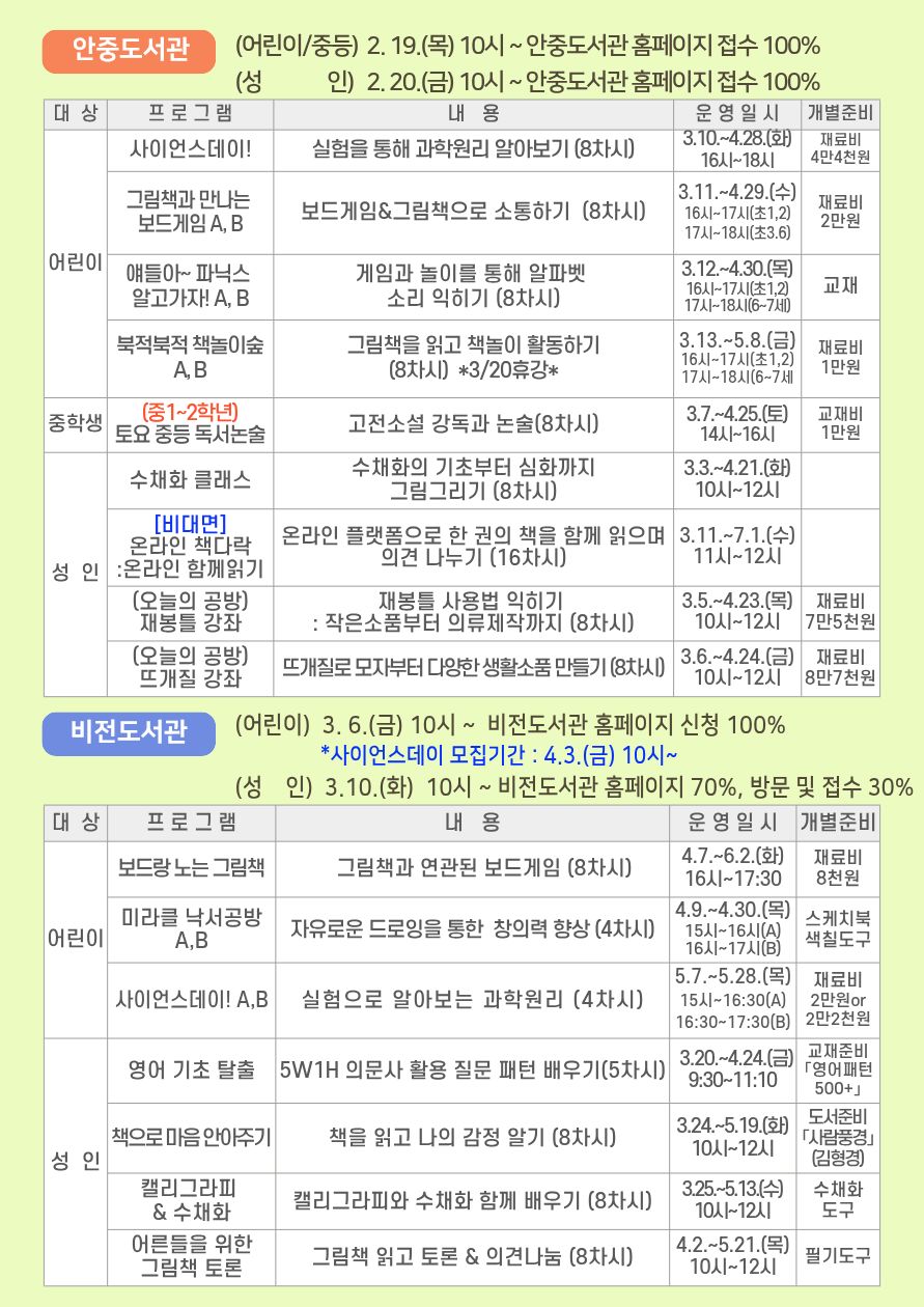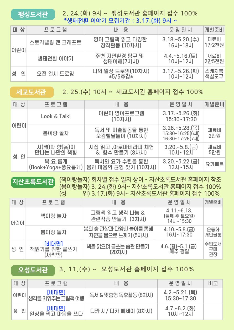 평택시도서관 중, 9개관의 상반기 배움터 프로그램을 통합하여 안내드립니다.