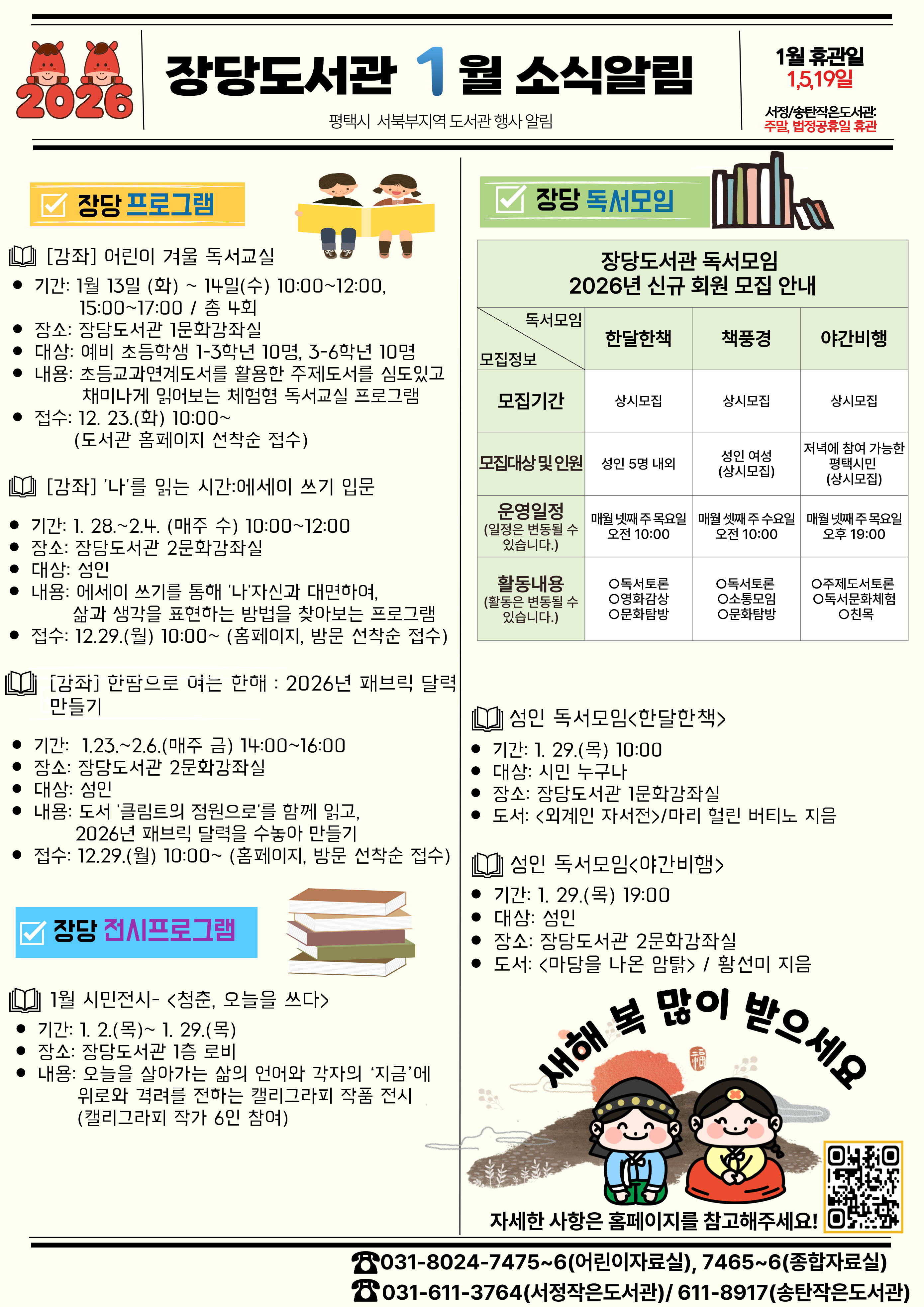 2026년 1월 장당도서관 프로그램 소식 알림