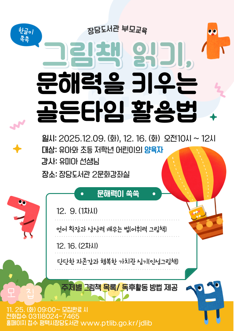 | 문화행사명 | [장당] 연말프로그램 <그림책 읽기, 문해력을 키우는 골든타임 활용법> 모집 |