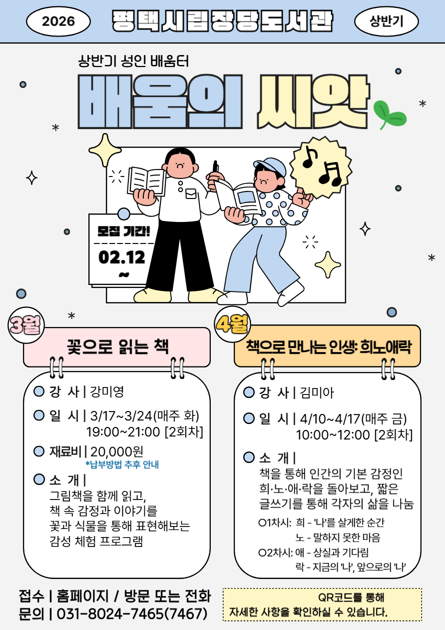| 문화행사명 | [장당] 2026년 상반기 성인 배움터 「꽃으로 읽는 책」 |