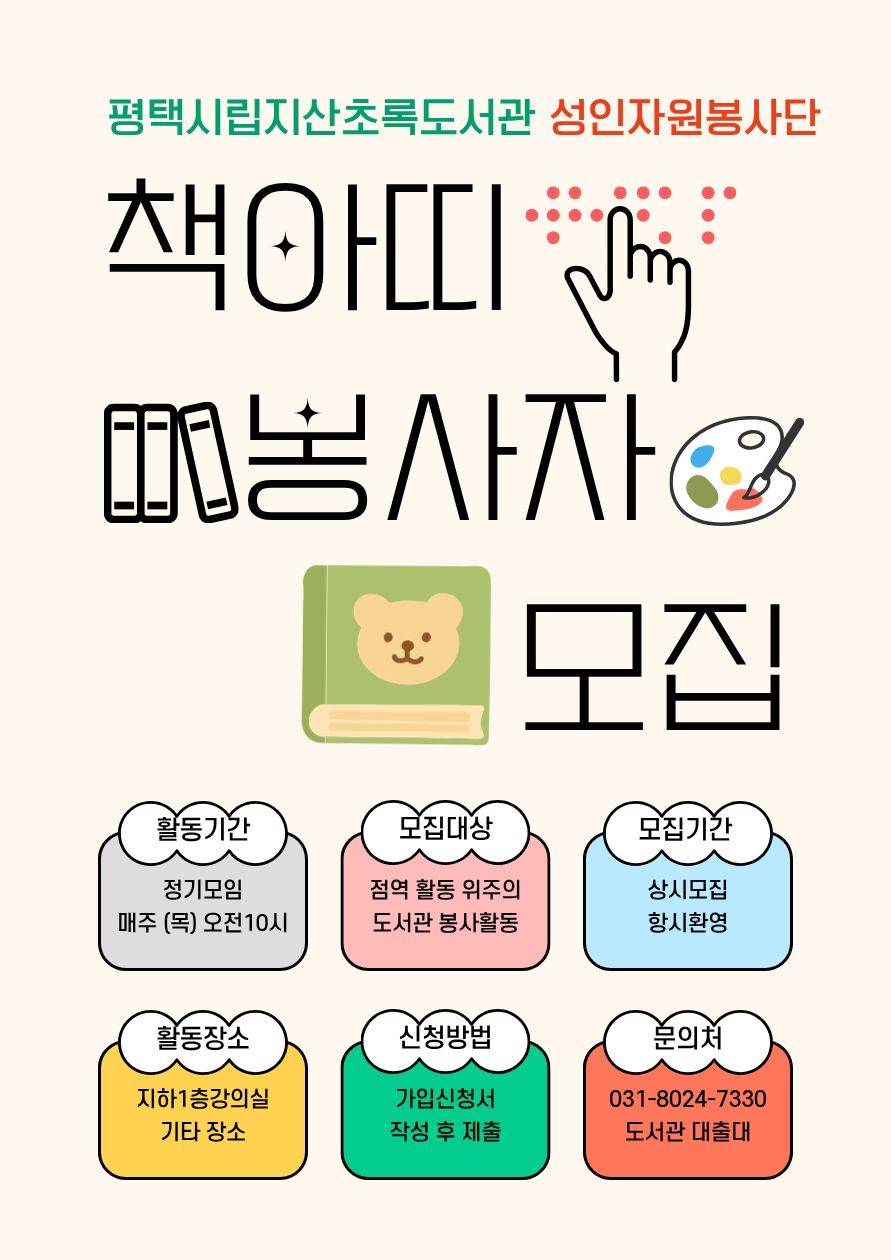 성인자원봉사단 '책아띠' 신입회원모집[상시모집]