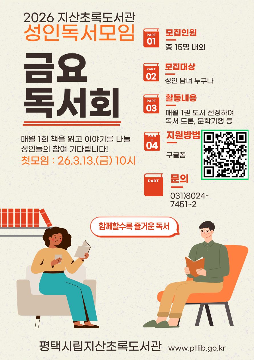2026 지산초록도서관 성인독서모임 <금요독서회> 회원모집