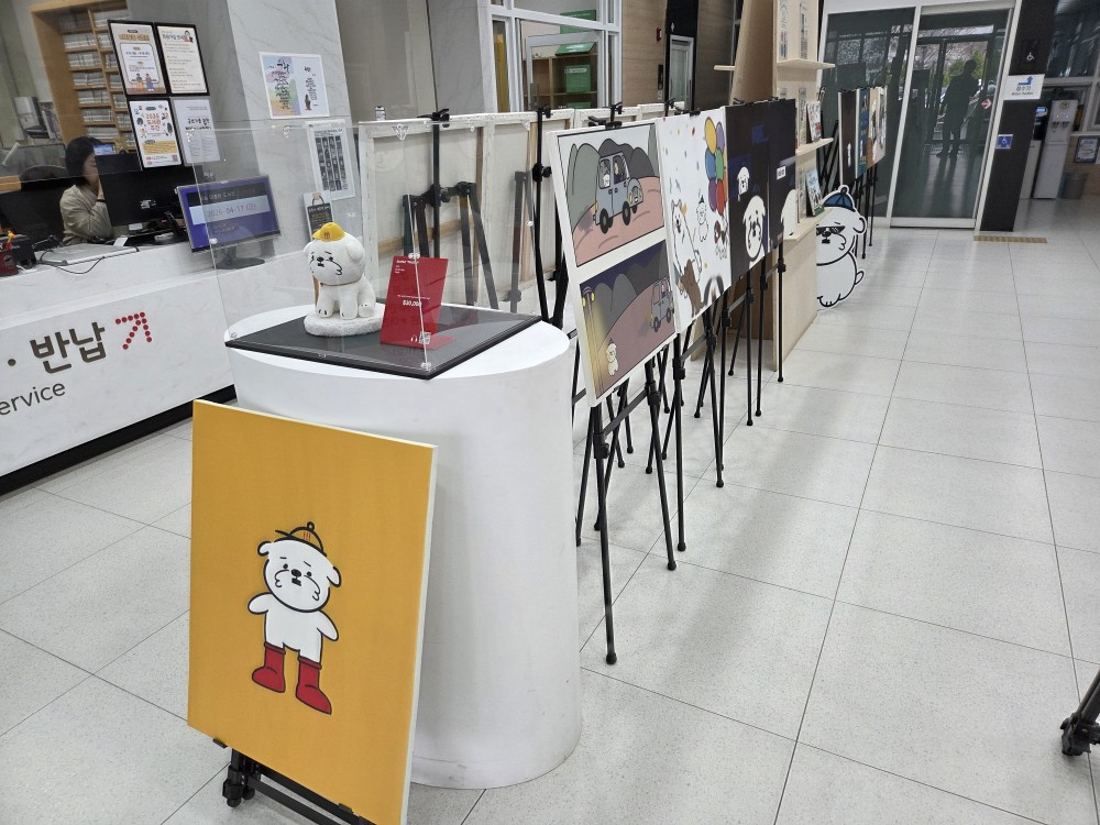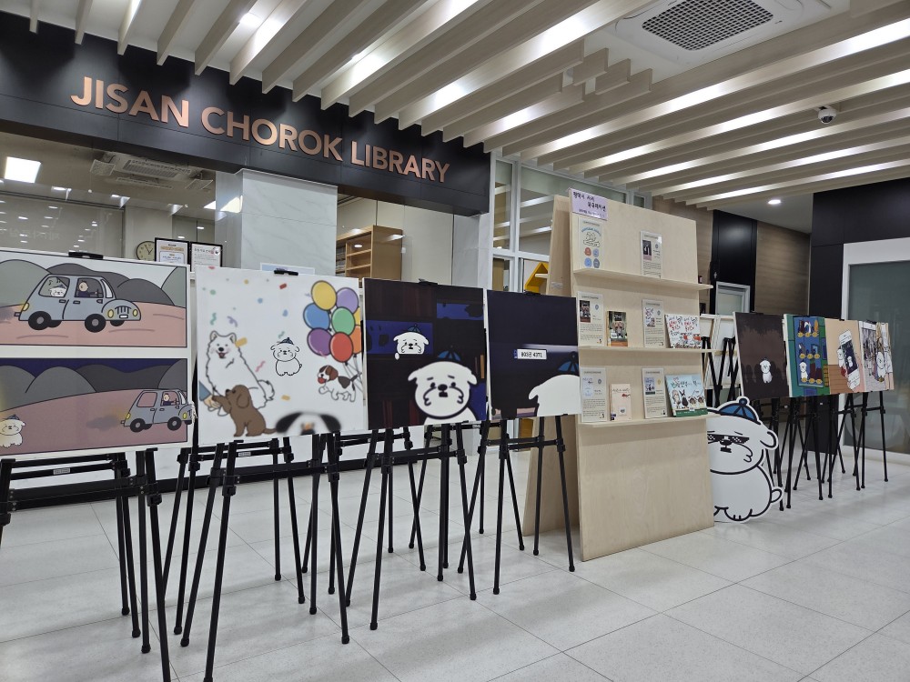 지산초록도서관 1층 로비 전시중인 그림 <떠구> 작가와 함께하는 도서 북큐레이션 및 그림 작품 해설 및 소통