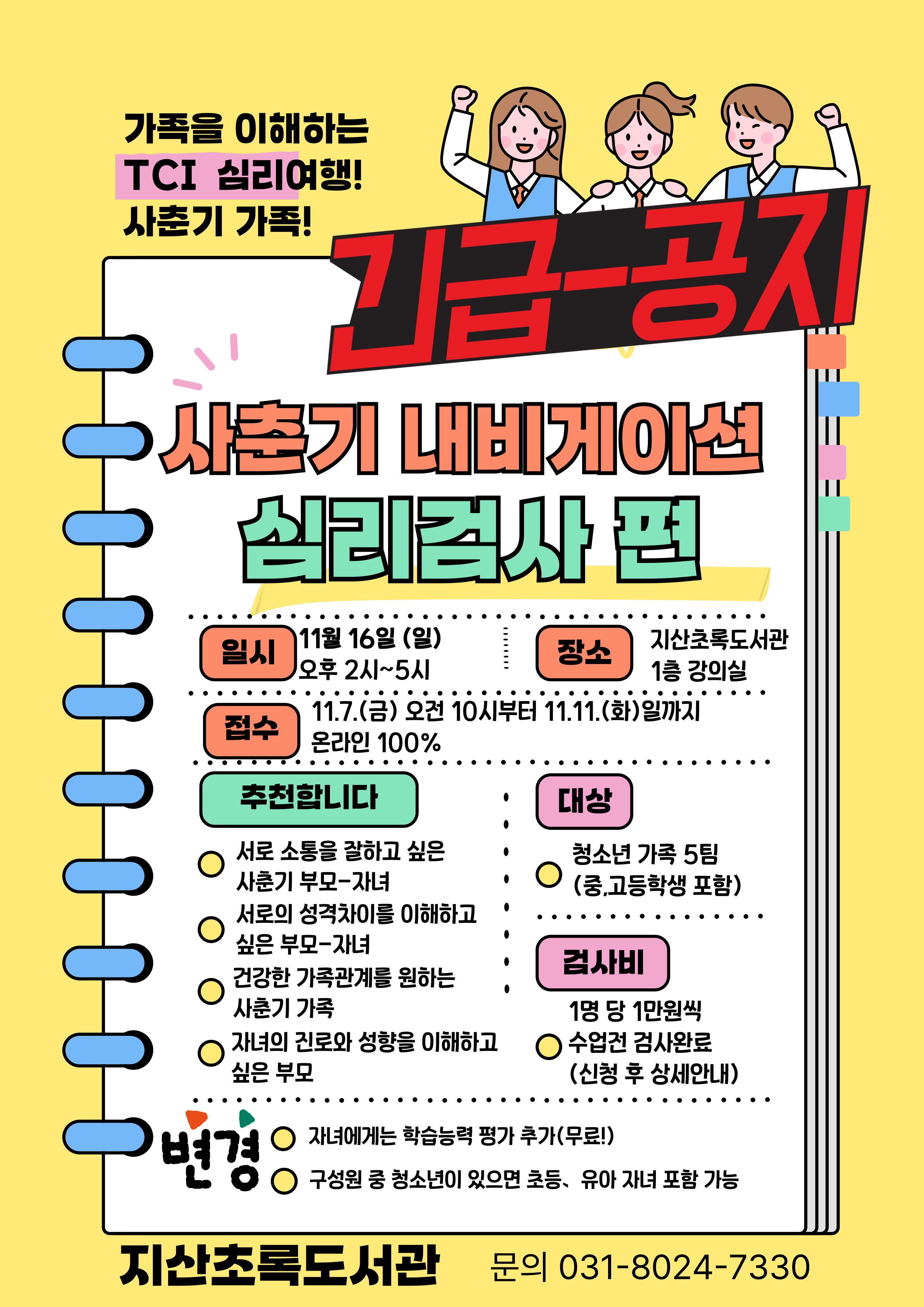 청소년 가족특강 <사춘기 내비게이션-심리검사편>