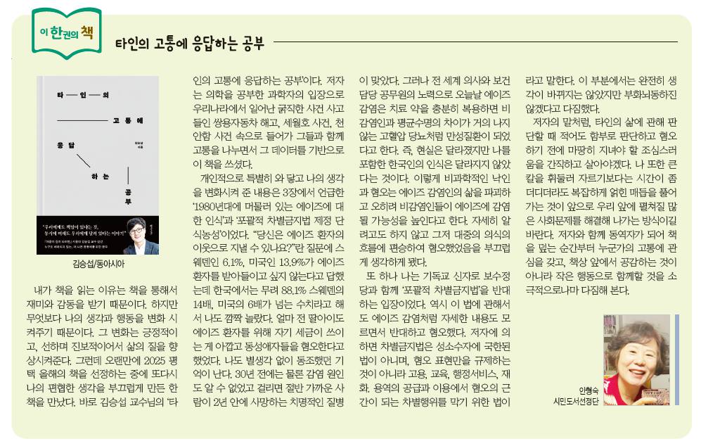 2025 독서칼럼 <타인의 고통에 응답하는 공부> (평택시사신문)