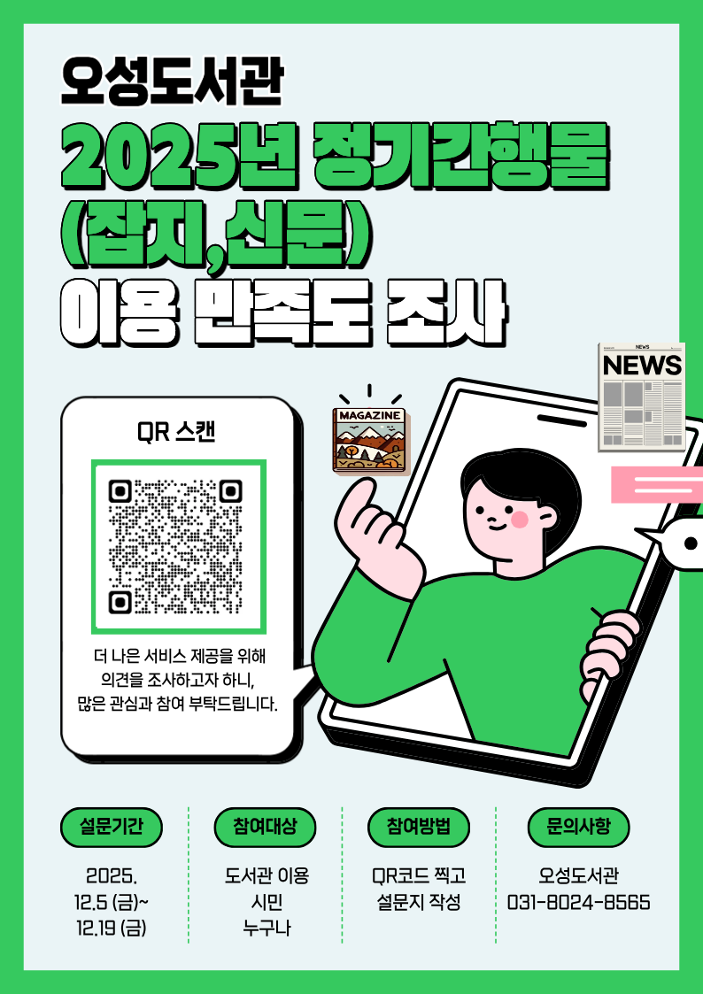2025년 정기간행물 이용 만족도 조사 안내(12/5~12/19)