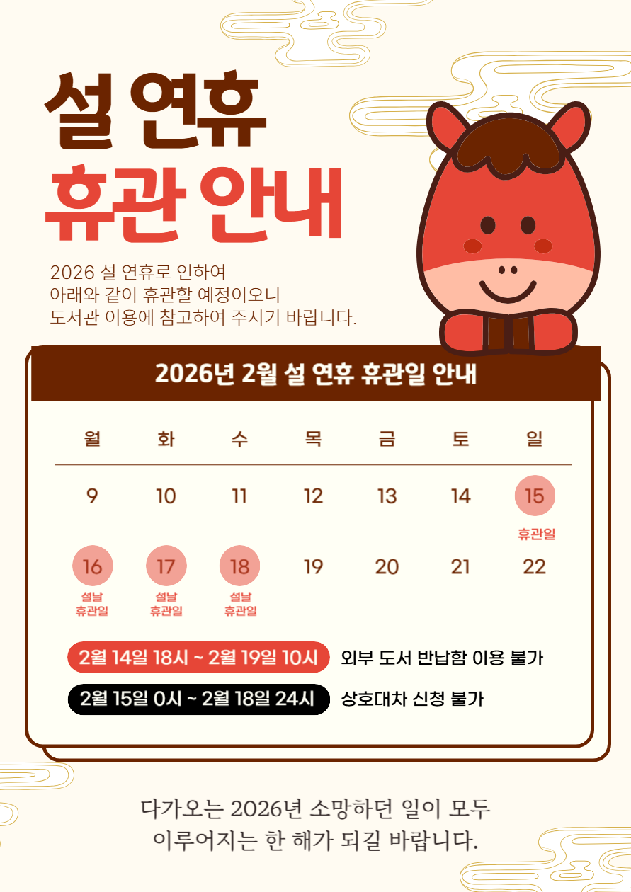 청북도서관 2026년 설 연휴 운영사항 안내
