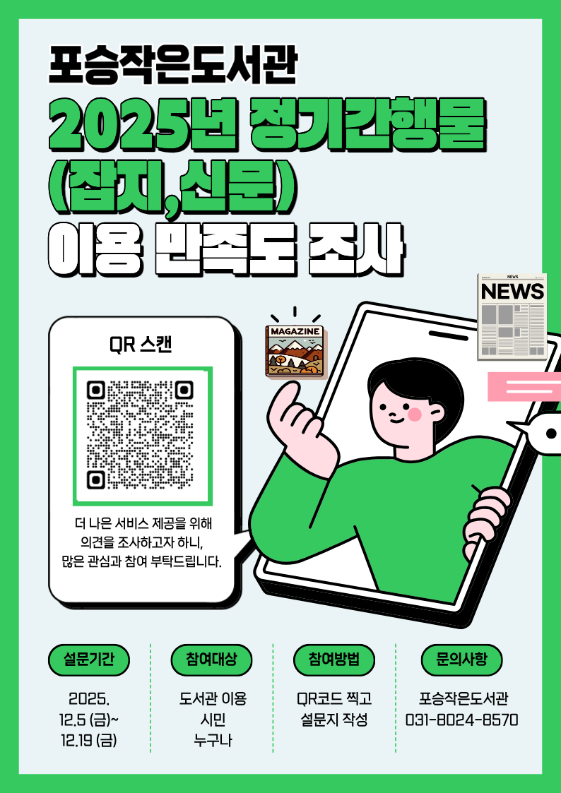 2025년 정기간행물 이용 만족도 조사 안내(12/5~12/19)