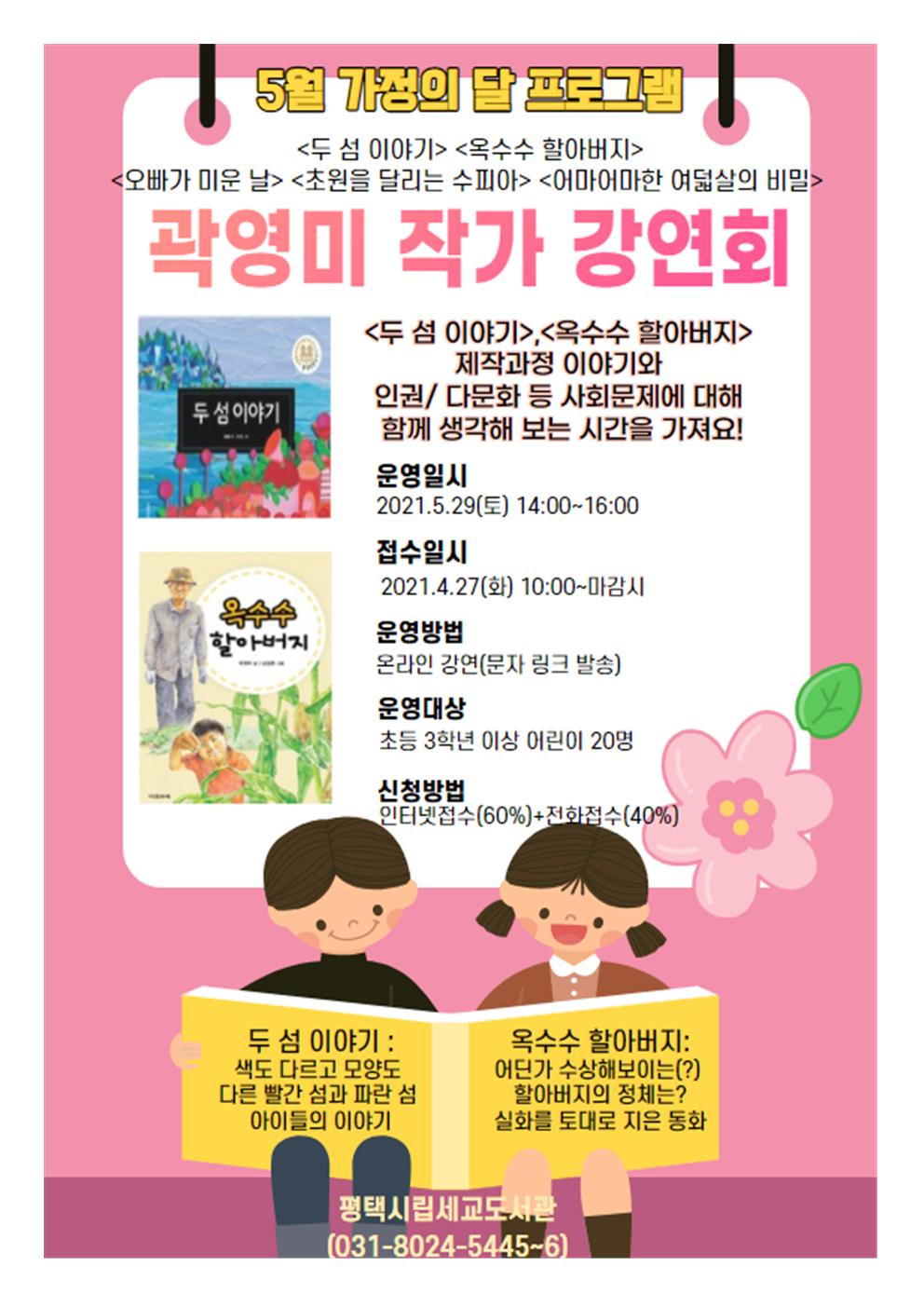 | 5월 가정의 달 프로그램 - <곽영미 작가 강연회> 운영안내 | |