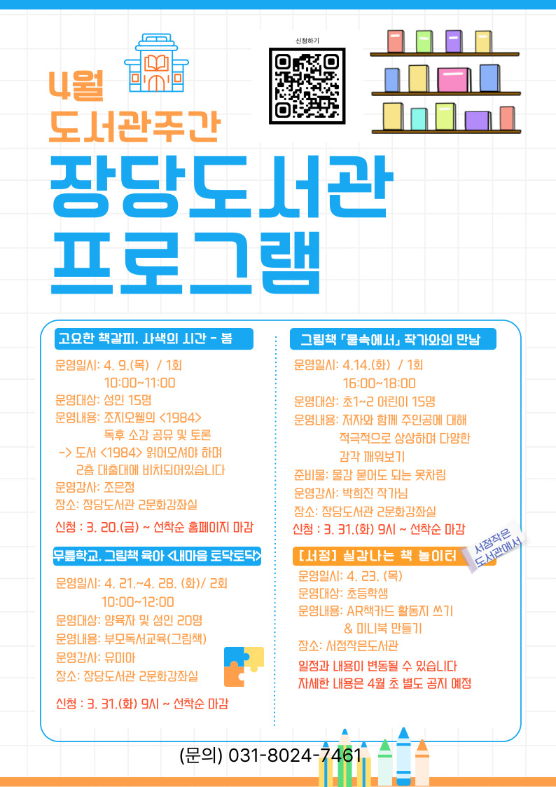 [장당/서정] 2026년 4월 도서관 주간 프로그램 안내 (연체탈출이벤트 포함)