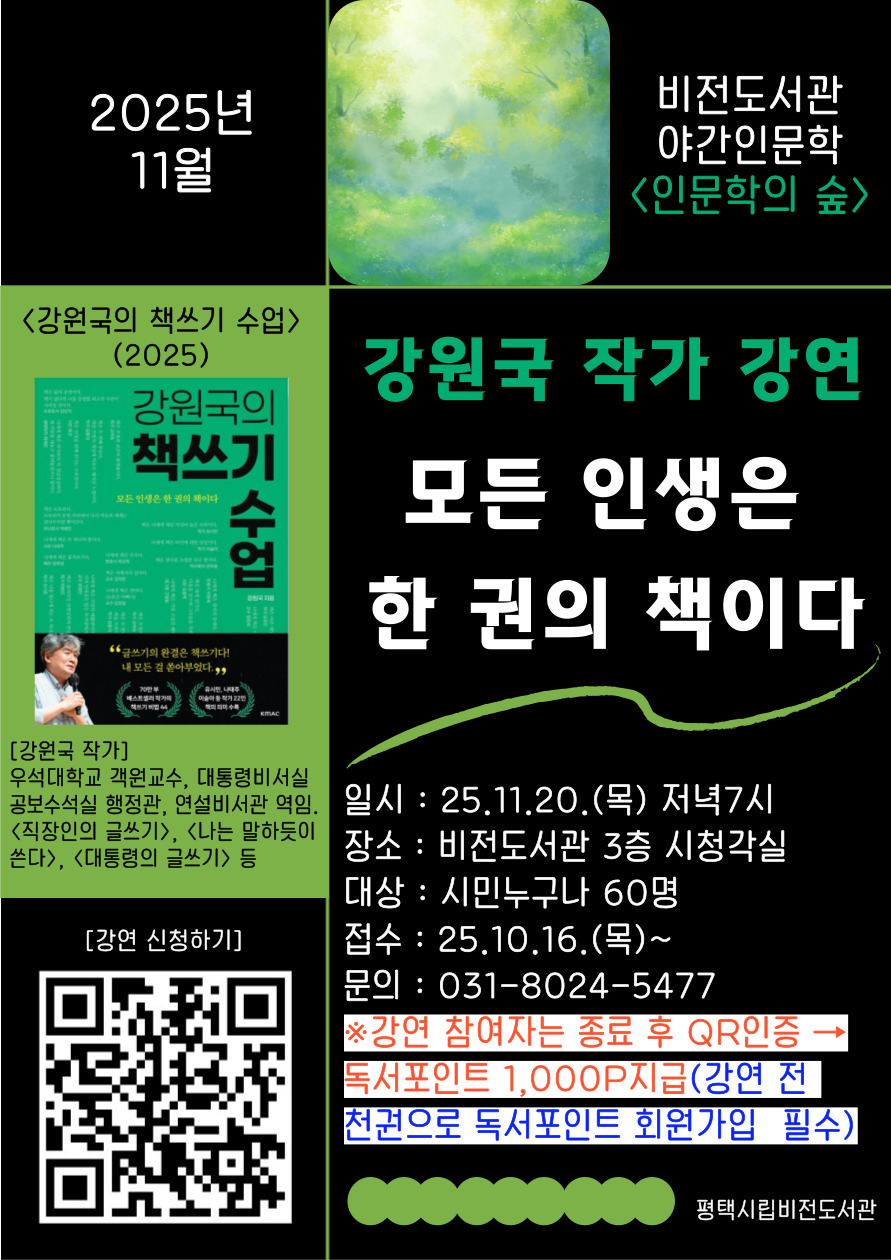 [11월 야간 인문학] 강원국 작가의 모든 인생은 한 권의 책이다